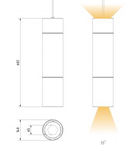 In Aluminium gearbeitete Pendelleuchte mit 2 Lichtebenen (Downlight, Uplight). Die Lichtebenen sind getrennt steuerbar.
